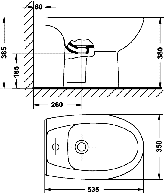 Напольное биде с переливом и отверстием под смеситель. В комплекте крепёж к полу.