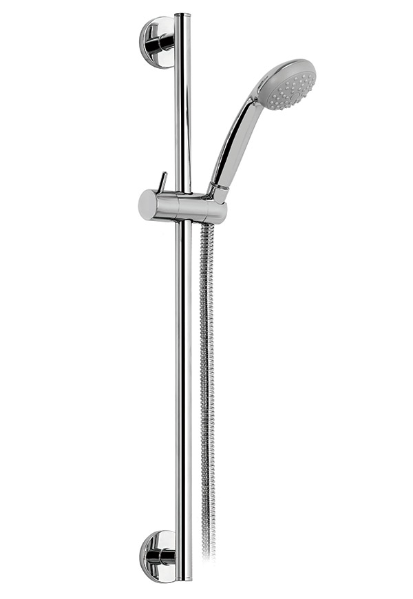 Душевой гарнитур с металлической душевой штангой Ø18 мм, душевой лейкой с одним видом струи и душевым шлангом 1.5 м в металлической оплётке.