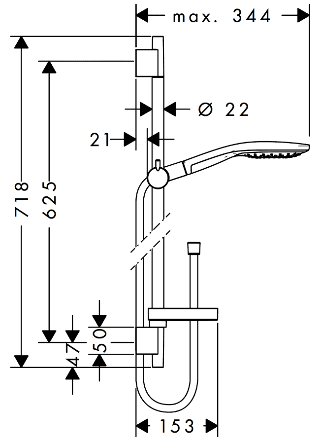 Hansgrohe RainDance Select S150 27802 000 3jet  Душевой гарнитур (штанга 0.65 м)