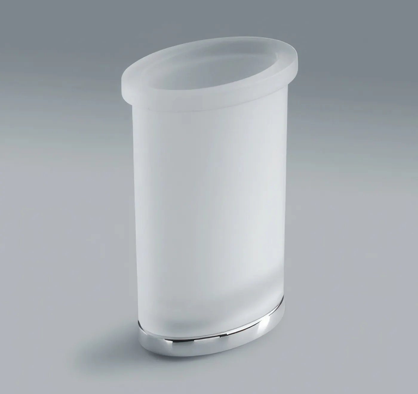 Настольный стаканчик для зубных щёток. Материалы - хромированная латунь, матовое стекло.