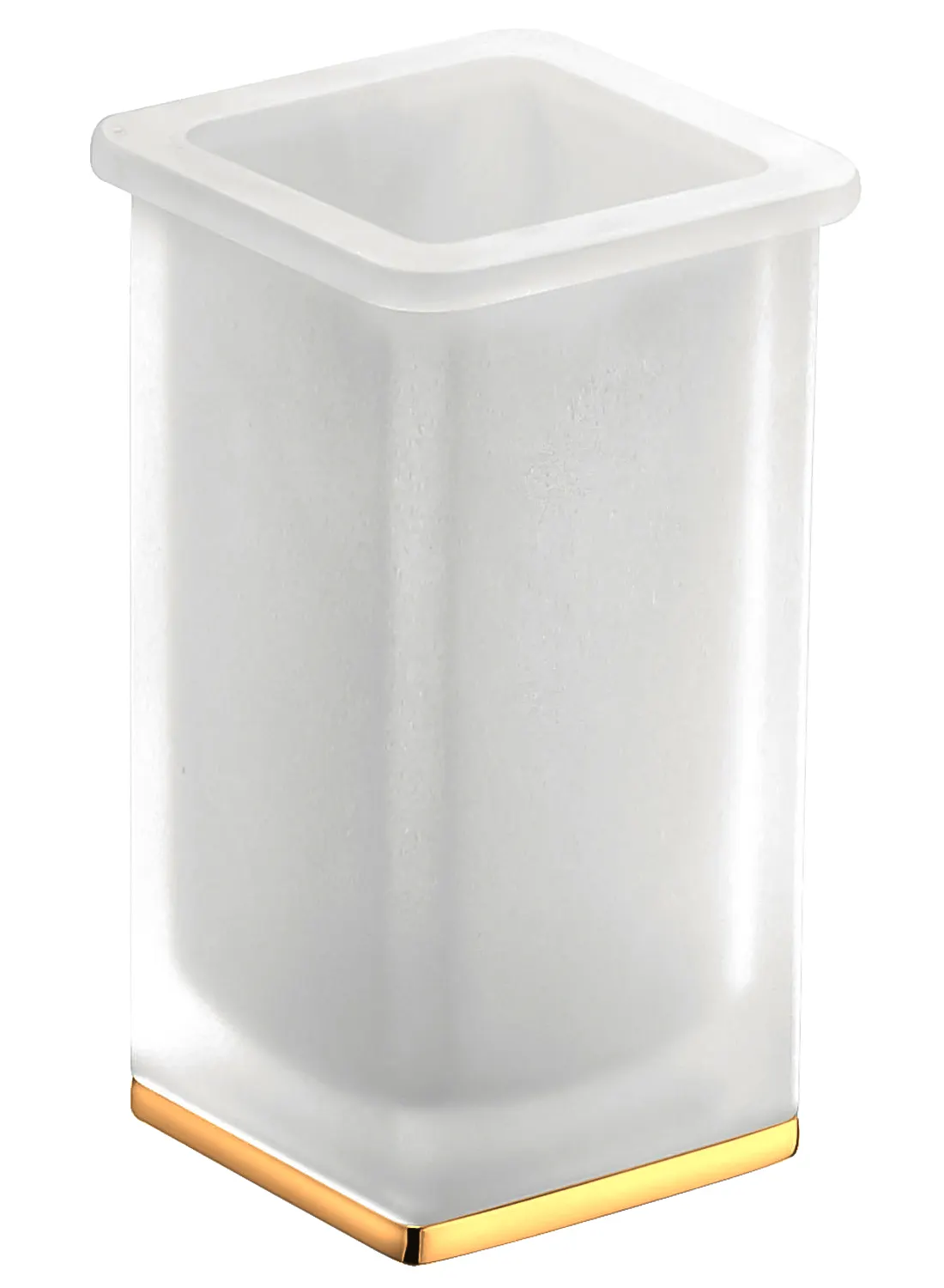 Настольный стакан для зубных щёток. Используемые материалы - матовое стекло, латунь.