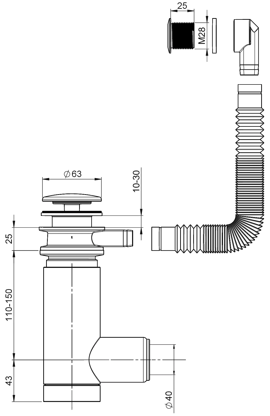Сифон Prevex EasyClean регулируется по высоте и подходит для большинства типов раковин и умывальников. Сифон комплектуется жёстким отводом или гофротрубой и может подключаться как к сливу в полу, так и в стене.